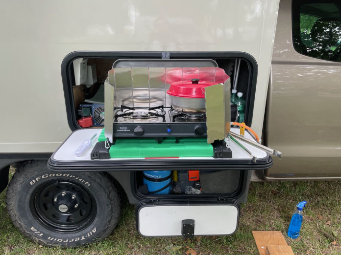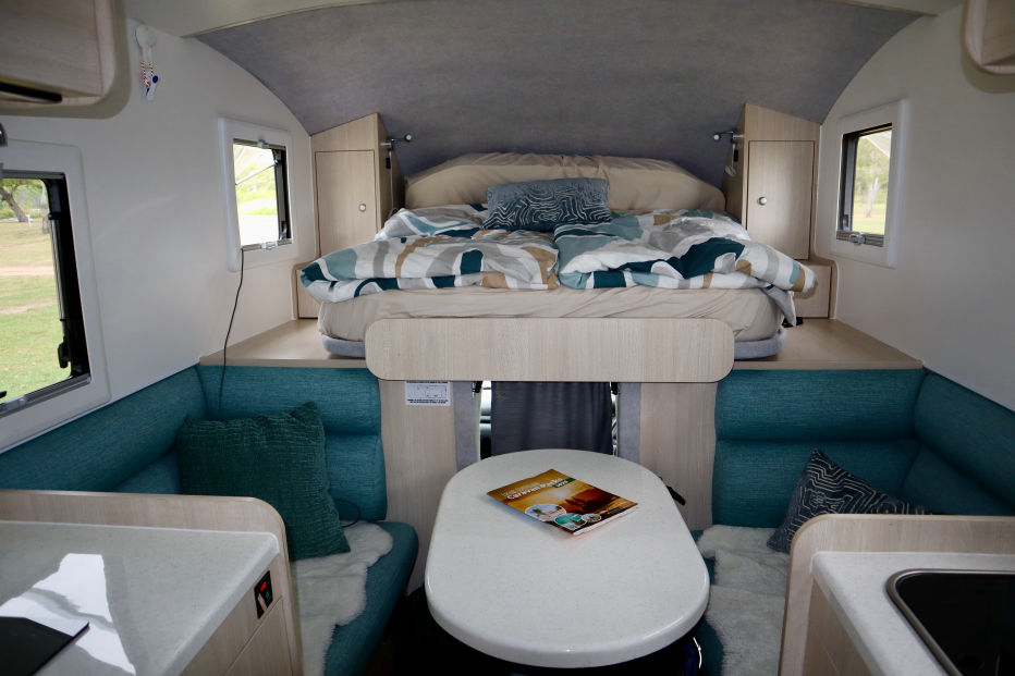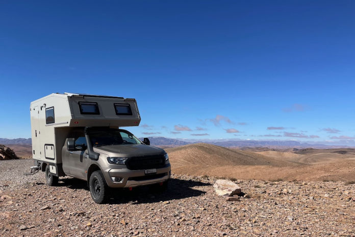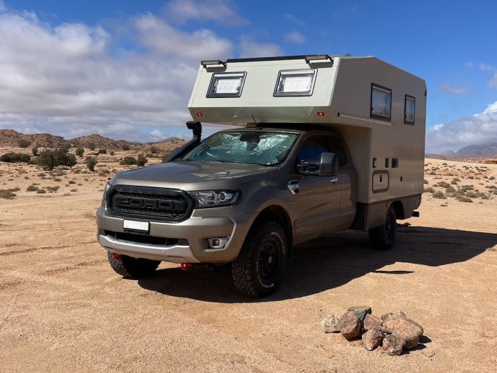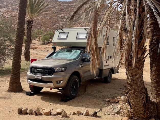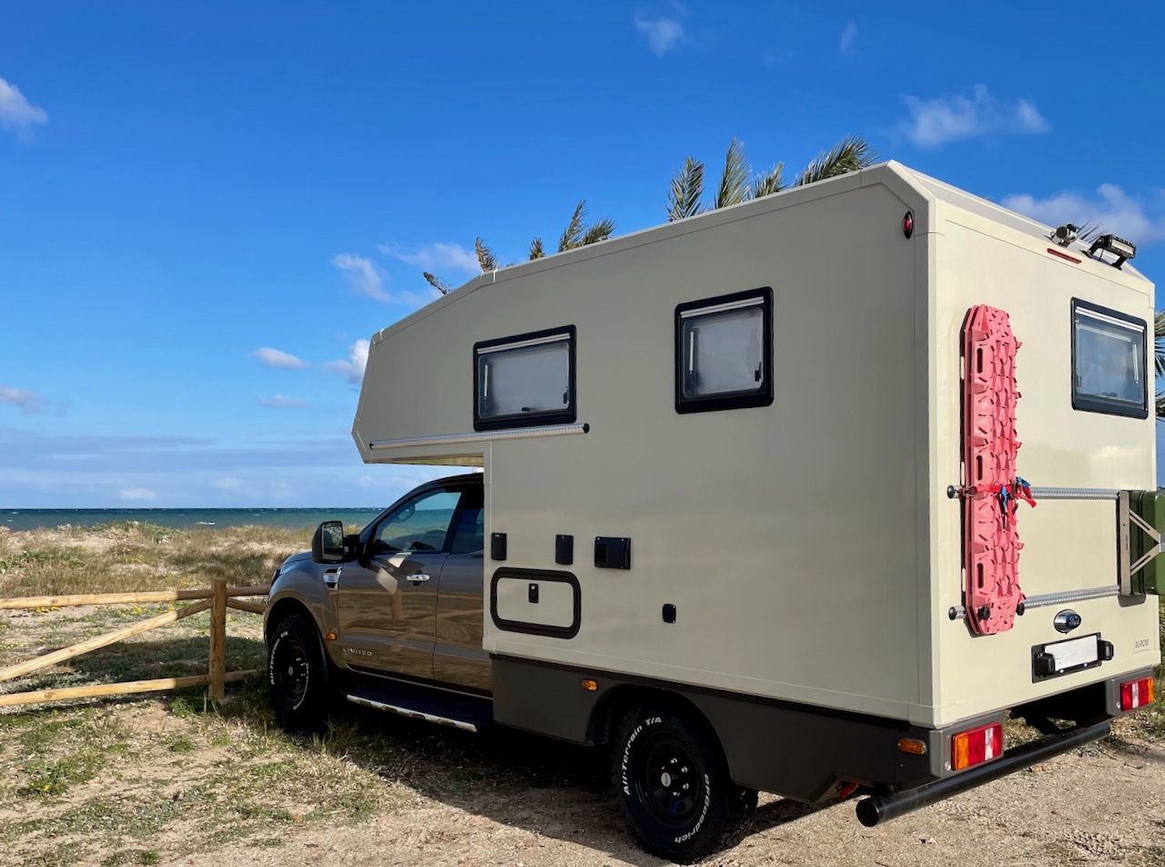 Autarkie bringt die Ausstattung mit Solarzellen und Batterien in Kombination mit dem 100 l Frisch- und 45 l Abwassertank sowie der winterfest ausgelegten Dieselheizung. Gekocht wird auf dem Induktionskochfeld oder einem Gasgrill im Freien. Für kurze Ausflüge finden die Klappräder auf der Rückbank des Ford Rangers mit Extrakabine platz. Bei einer kompakten Länge von 6.20 m ist er auf ein Gewicht von 3.5 T ausgelegt.