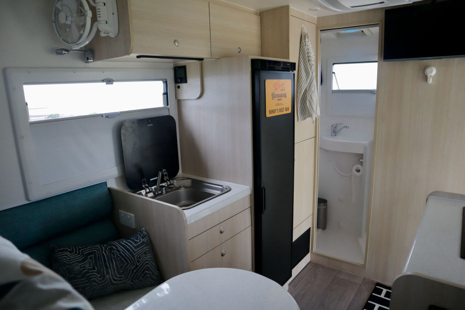 Das australische Explorer Motorhome Spirit Extreme verfügt über ein ausgeklügeltes ausziehbares Doppelbett, einen gemütlichem Sitzbereich und ausreichend Stauraum. Das Badezimmer mit separater Dusche und OGO Toilette ist schlicht aber dafür sehr funktional gestaltet. Die Küche haben wir mit Induktionskochfeld und grossem 150 L Kühlschrank gewählt und der ausziehbare outdoor BBQ Grill ist für uns ein neuer Komfort. Mit seiner robusten Bauweise ist der Explorer nicht nur für das Bereisen der Touristen-Hotspots, sondern auch für Campingabenteuer im Outback geeignet.